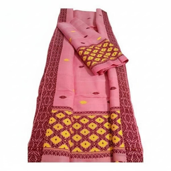 4070 Set Description : A Pure Padmini Dmc Work Mekhela Chadar Is A Traditional Assamese Two-piece Garment Made From Fine Padmini Cotton And Embellished With Intricate, Vibrant Embroidery Using High-quality Dmc Brand Thread. This Combination Creates A Sophisticated, Handloom-woven Product Prized For Its Detailed Designs And Comfortable Feel. Location : Assam, India