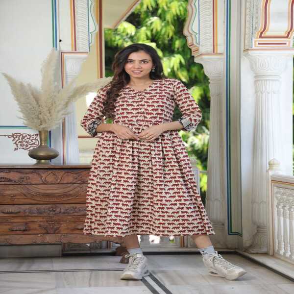 Home > Handlooms & Handcrafted > Womens Wear > Bagru Hand Block Printed Long One-piece Dress