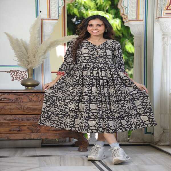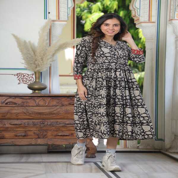 Home > Handlooms & Handcrafted > Womens Wear > Bagru Hand Block Printed Long One-piece Dress