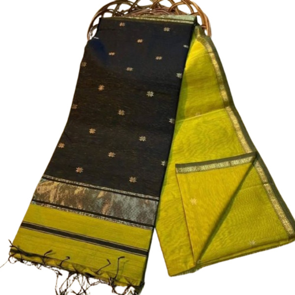 4940 Piece Description : A Maheshwari Silk By Cotton Weave Saree Is A Lightweight And Elegant Handloom Saree From Maheshwar, India, Made From A Blend Of Silk And Cotton Yarns For A Soft, Lustrous Feel. It Is Known For Its Reversible Border, Intricate Geometric Patterns, And Motifs Inspired By Architecture And Nature, Often Enhanced With Zari Work. The Combination Of Cotton And Silk Makes The Saree Both Comfortable And Elegant, Suitable For Various Occasions. Location : Madhya Pradesh, India