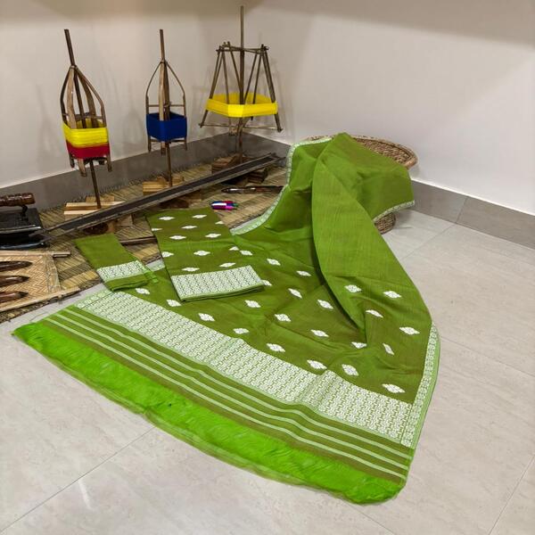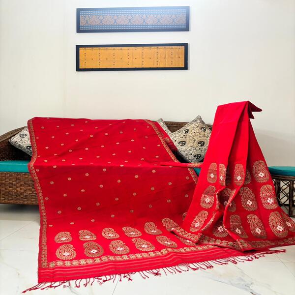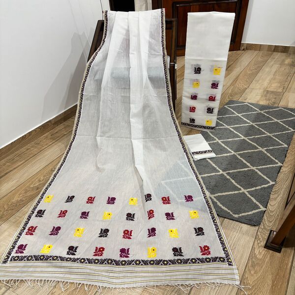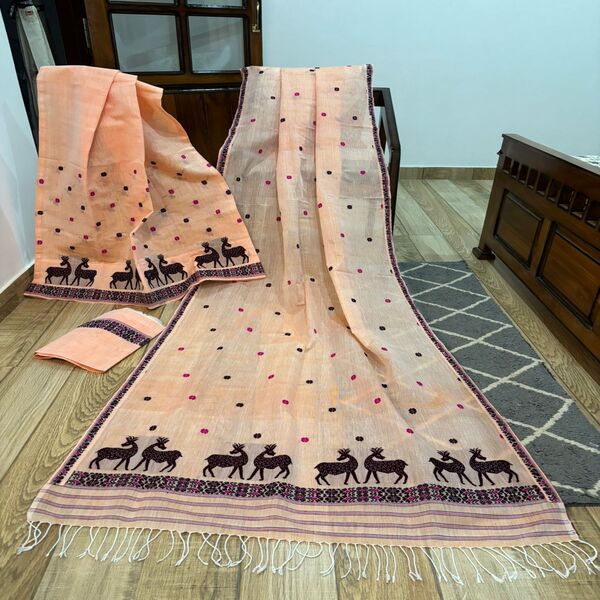 8710 Set Description : A Cotton Kesapat Mekhela Chadar Is A Traditional Assamese Handwoven Garment Made From A Blend Of Cotton And Kesapat (raw Mulberry Silk), Creating A Lightweight, Breathable, And Durable Fabric. It Consists Of Two Main Pieces: The Mekhela, A Wrap-around Skirt, And The Chadar, A Long Drape Worn Over The Upper Body. These Garments Are Often Adorned With Intricate Designs, Including Embellishments Like Zari Work, And Are Perfect For Both Everyday Wear And Special Occasions. Location : Assam, India