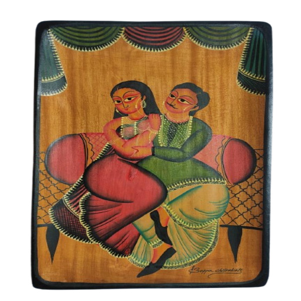 2405 Piece Description : A Kalighat Wooden Wall Plate Is A Decorative Item Featuring A Hand-painted Design In The Traditional Kalighat Style, Originating From 19th-century Bengal. These Plates Are Made On A Wooden Base As A Modern Adaptation Of The Original Scroll And Paper Paintings. They Are Known For Bold Lines, Simple Shapes, Bright Colors, And A Variety Of Themes, Including Mythological Figures, Everyday Scenes, And Folk Tales. Location : West Bengal, India