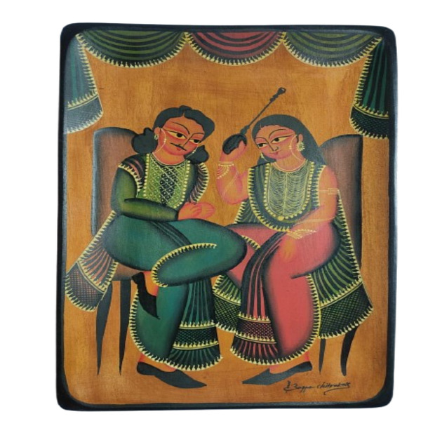 2405 Piece Description : A Kalighat Wooden Wall Plate Is A Decorative Item Featuring A Hand-painted Design In The Traditional Kalighat Style, Originating From 19th-century Bengal. These Plates Are Made On A Wooden Base As A Modern Adaptation Of The Original Scroll And Paper Paintings. They Are Known For Bold Lines, Simple Shapes, Bright Colors, And A Variety Of Themes, Including Mythological Figures, Everyday Scenes, And Folk Tales. Location : West Bengal, India