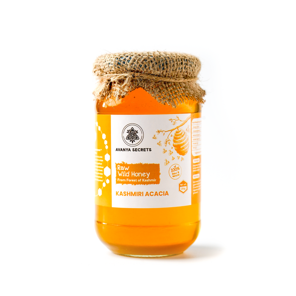351 Bottle Net Weight : 250 Gram Description : Avanya Secrets Kashmiri Acacia Honey Is A Premium Wild Honey Harvested From The Pristine Acacia Blossoms Of Kashmir. Collected From Wild Beehives, This Natural Honey Retains Its Delicate Floral Aroma, Light Golden Colour, And Smooth Texture. Using The Age-old Single Filtration Method, Our Raw Honey Is Left Unpasteurised And Minimally Processed, Helping Preserve Its Original Nutritional Value. As A Pure, Organic Honey, It Offers A Luxurious Taste And Healthful Benefits For Daily Use. Ethically Sourced Rooted In Our Promise Of Authenticity, We Ensure This Forest Honey Remains Authentic And Wholesome. Naturally Pure And Free From Sugar Or Artificial Preservatives, It Is Processed Only Once Through The Traditional Filtration Method To Uphold Its Authenticity. Collected Through Sustainable Sourcing With Ethical Beekeeping Practices, Our Kashmiri Acacia Honey Provides A Nourishing, Artisanal Product That Reflects The Pristine Quality Of Kashmirs Landscapes, Perfect For Those Seeking Organic Honey With A Refined Flavour. Location : Jammu & Kashmir, India