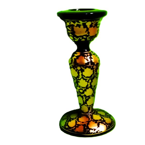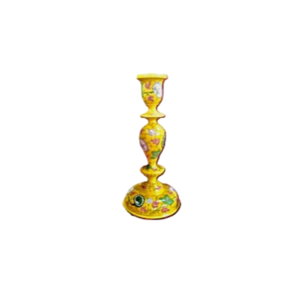 98 Piece Description : A Paper Mache Candle Stand Is A Handcrafted Decorative Item Made By Layering Paper Strips And Adhesive Over A Form, Resulting In A Lightweight Yet Durable Piece. These Stands Are Often Hand-painted With Intricate Designs, Given A Protective Glossy Finish, And Can Be Customized In Various Shapes And Colours To Serve As Both A Functional Candle Holder And An Artistic Accent For Home Décor. Location : Jammu & Kashmir, India
