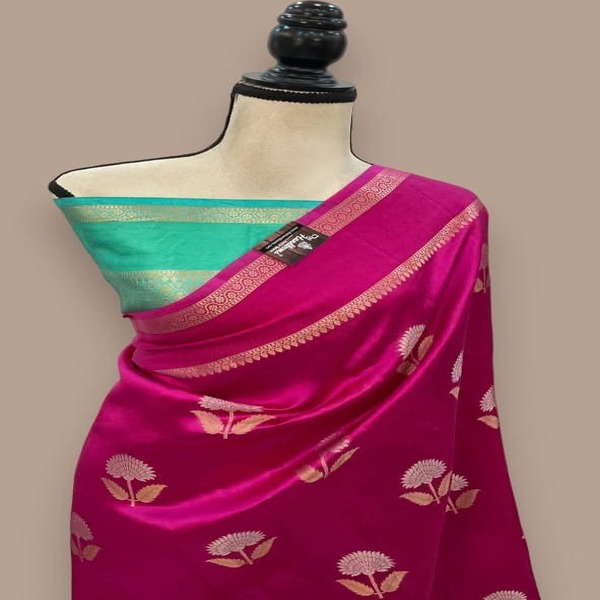 2420 Piece Description : A Semi-georgette Bota Banarasi Border Saree Is An Elegant Fusion Of Contemporary Comfort And Traditional Indian Weaving Artistry. Made From Semi-georgette Fabric, It Offers A Lightweight, Flowy Drape With A Soft, Slightly Textured Finish That Feels Comfortable And Graceful To Wear. The Saree Is Adorned With Bota Motifs—small, All-over Woven Designs That Add Subtle Richness And Visual Interest—while The Banarasi Border Features Classic, Intricately Crafted Patterns Inspired By The Famed Banarasi Weaving Tradition, Often Including Floral Or Foliate Motifs With A Shimmering Contrast. This Combination Creates A Refined Look That Balances Modern Ease With Timeless Ethnic Charm, Making It Ideal For Festive Gatherings, Celebrations, And Semi-formal Occasions Where You Want To Look Stylish Yet Rooted In Tradition. Location : Bihar, India