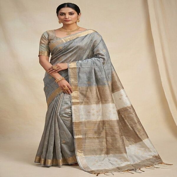 A Pure Tussar Desi Bhagalpuri Saree is a luxurious, handwoven silk saree from Bhagalpur, India, known for its rich, natural golden sheen, unique earthy texture from wild silkworm silk (Tussar), lightweight feel, and sophisticated drape, often featuring intricate traditional designs or natural dyes, making it perfect for festive elegance. Location : Bihar, India