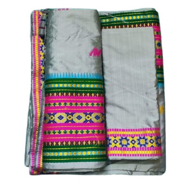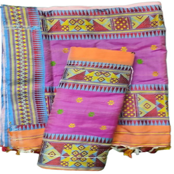 5390 Set Description : A Mix Paat Mekhela Chadar Is A Traditional Two-piece Assamese Attire Made From A Blend Of Luxurious Paat Silk (mulberry Silk) And Other Fibres Like Cotton Or Polyester, Offering The Sheen Of Silk With Enhanced Comfort And Durability For Everyday Wear Or Festivities, Featuring Traditional Assamese Motifs Woven In Vibrant Colours For A Rich, Cultural Look. It Consists Of A Hand-stitched Skirt (mekhela) And A Long Drape (chadar) That Covers The Torso. In Essence, It Is A Comfortable, Culturally Rich, And Visually Stunning Garment, Perfect For Celebrating Assamese Heritage. Location : Assam, India