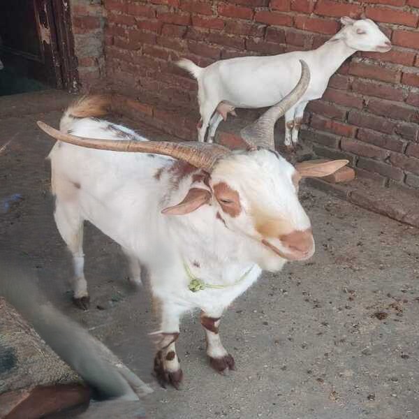13200 No. Description : The Barbari Goat Is A Small, Compact, Dual-purpose (milk & Meat) Breed Known For Its Hardiness, High Prolificacy (twins/triplets), And Adaptability, Typically Featuring A White Coat With Reddish-brown Spots, Short Ears, And Often Twisted Horns, Thriving In Dry Regions Like North India And Pakistan. Location : Uttar Pradesh, India
