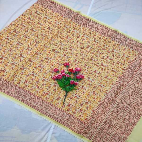 494 Piece Description : A Bagru Hand Block Printed Cotton Mulmul Saree Is A Lightweight Breathable Saree Crafted Using Traditional Indian Textile Techniques From The Village Of Bagru In Rajasthan. It Is Made From Mulmul Cotton A Very Fine Soft And Sheer Variety Of Cotton Known For Its Comfort And Airy Feel Making The Saree Ideal For Warm Weather The Fabric Drapes Gently And Feels Smooth Against The Skin. The Saree Features Hand Block Printing Where Skilled Artisans Carve Intricate Floral Paisley Or Geometric Motifs Onto Wooden Blocks And Stamp Them Onto The Fabric Using Natural Or Vegetable-based Dyes Typical Bagru Designs Use Earthy Colours Such As Indigo Red Black And Beige Often Inspired By Nature And Traditional Rajasthani Patterns. Location : Rajasthan, India