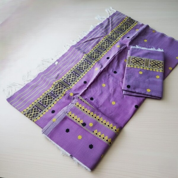 629 / Piece Description : A Bagru Hand Block Printed Cotton Mulmul Saree Is A Lightweight Breathable Saree Crafted Using Traditional Indian Textile Techniques From The Village Of Bagru In Rajasthan. It Is Made From Mulmul Cotton A Very Fine Soft And Sheer Variety Of Cotton Known For Its Comfort And Airy Feel Making The Saree Ideal For Warm Weather The Fabric Drapes Gently And Feels Smooth Against The Skin. The Saree Features Hand Block Printing Where Skilled Artisans Carve Intricate Floral Paisley Or Geometric Motifs Onto Wooden Blocks And Stamp Them Onto The Fabric Using Natural Or Vegetable-based Dyes Typical Bagru Designs Use Earthy Colours Such As Indigo Red Black And Beige Often Inspired By Nature And Traditional Rajasthani Patterns. Location : Rajasthan, India