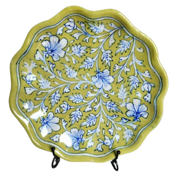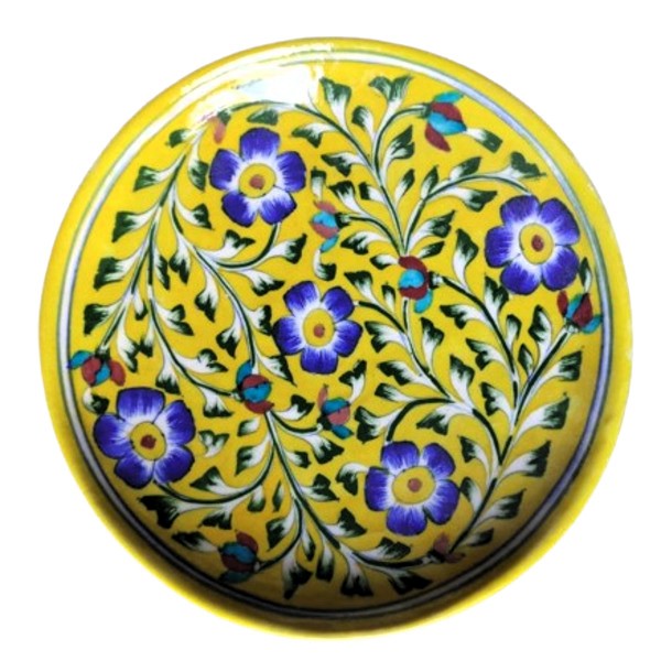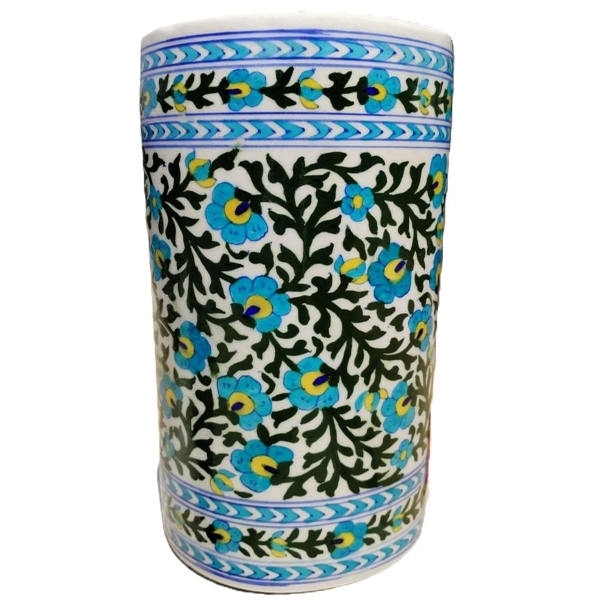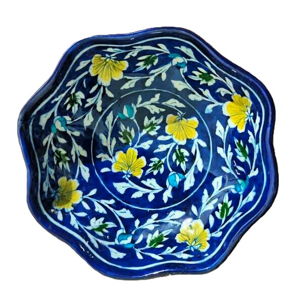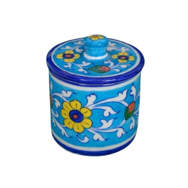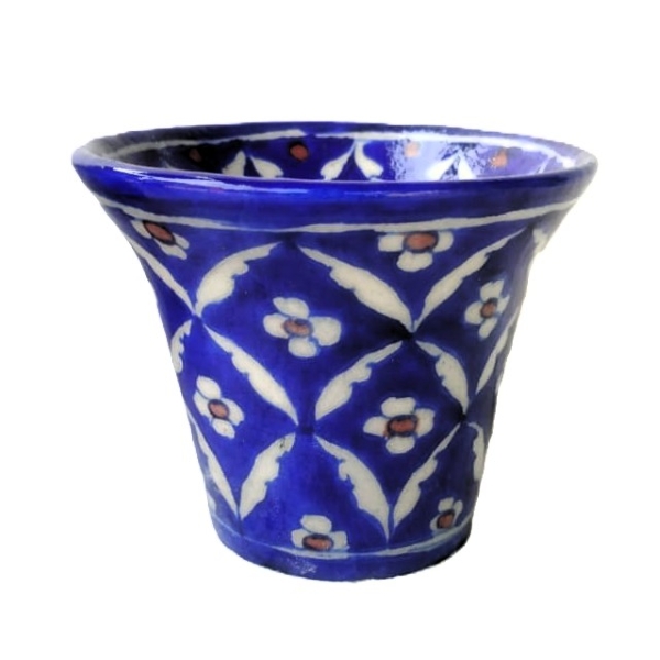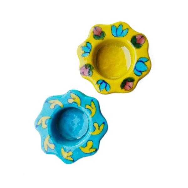 77 Piece Description : A Blue Art Pottery T-light Holder Is A Decorative Item, Handcrafted Using A Traditional Technique From The Jaipur Region Of Rajasthan, That Gets Its Name From The Use Of Cobalt Blue Dye. These Holders Are Typically Decorated With Intricate, Often Hand-painted Designs, Such As Floral, Animal, Or Mughal-era Patterns. Made From A Mixture Of Clay And Other Materials Like Quartz And Multani Mitti, They Are Fired To Create A Durable, Hygienic, And Visually Striking Piece That Adds An Elegant Touch To Any Room. Location : Rajasthan, India