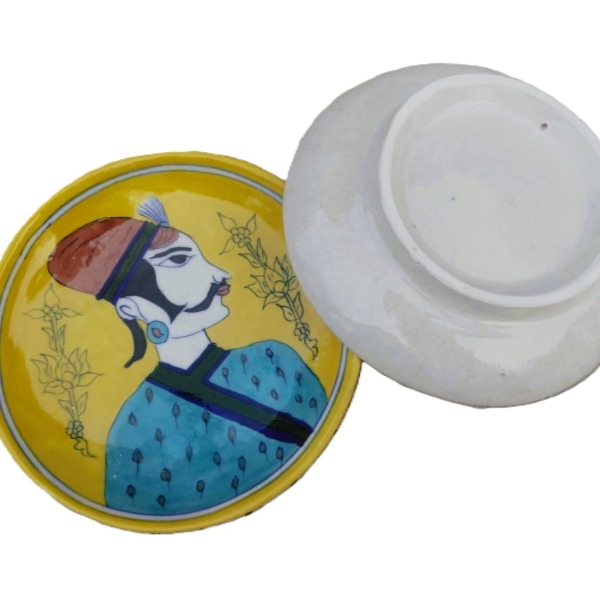 308 Piece Description : A Decorative Blue Art Pottery Plate Is Typically A Handcrafted Piece Of Jaipur Blue Pottery, An Indian Craft Distinguished By Its Vibrant Cobalt Blue Dye And Intricate, Hand-painted Designs On A Glossy, White-glazed Surface. Unlike Traditional Pottery That Uses Clay, This Art Form Is Made From A Special Egyptian Paste Consisting Of Quartz Stone Powder, Glass, Fullers Earth (multani Mitti), And Natural Gums. This Unique Composition Makes The Resulting Plates Durable, Impervious, And Resistant To Cracks, Though They Can Be Fragile Due To Being Fired At Low Temperatures. While Some Plates Can Be Used For Serving, Most Are Purely Decorative And Feature Traditional Persian-inspired Floral And Geometric Motifs, Or More Modern Animal And Bird Patterns. Location : Rajasthan, India