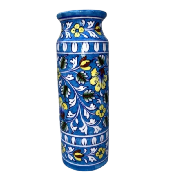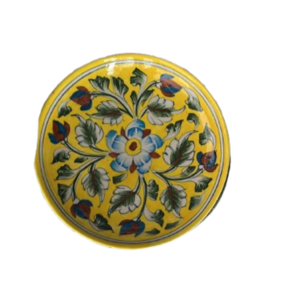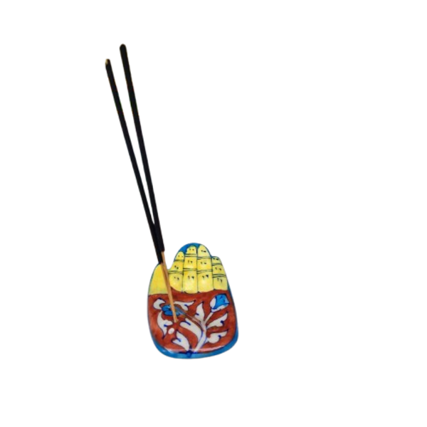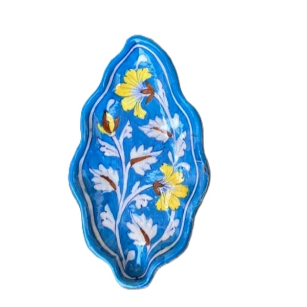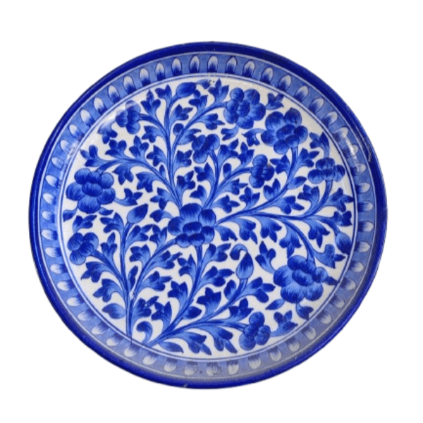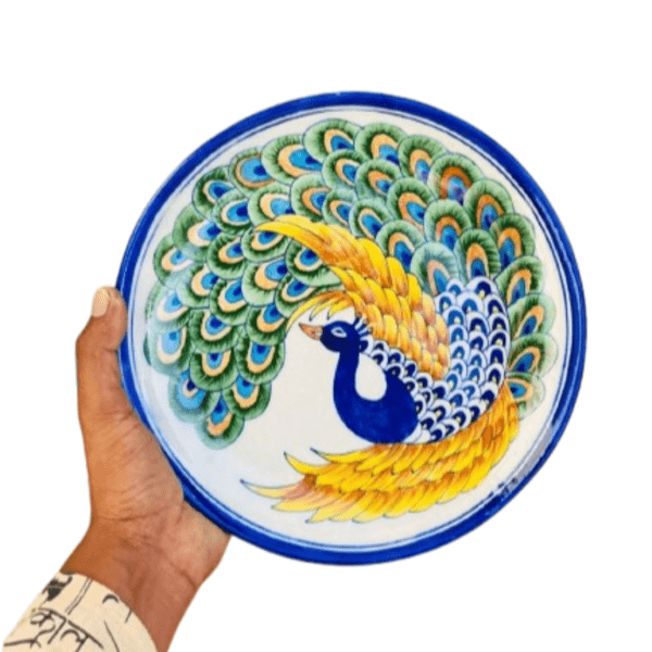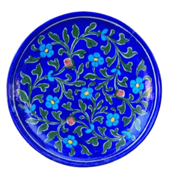 880 Piece Description : A Blue Art Pottery Wooden Chowki Is A Decorative Or Spiritual Platform Made Of A Wooden Base With A Blue Art Pottery Ceramic Top. The Wooden Part Is Often Polished, While The Pottery Inlay Features Hand-painted, Traditional Designs, Typically In Shades Of Blue, And May Include Floral, Animal, Or Geometric Motifs. These Chowkis Are Used For Religious Ceremonies, As A Decorative Centrepiece, Or For Serving, And Can Vary In Size And Colour. Location : Rajasthan, India
