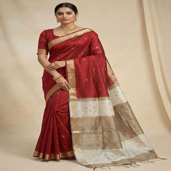 2860 Piece Description : A Hand Block Printed Ajrakh Modal Saree Is A Hand-crafted Textile Featuring Intricate, Geometric Or Floral Patterns, Created Using Traditional Wooden Blocks And Natural Dyes On A Fabric Blend Of Modal And Rayon-cotton. The Process Involves Layering Blocks, With Each Colour And Pattern Applied Separately, And Requires Multiple Rounds Of Printing And Sun-drying. The Resulting Saree Is Known For Its Soft Drape, Unique Earthy And Bold Aesthetic, And The Unique Variations That Come From Being Entirely Handmade. Due To The Handmade Nature Of The Process, Each Saree Has Slight Variations, Making It A Unique Piece Of Wearable Art. Location : Gujarat, India