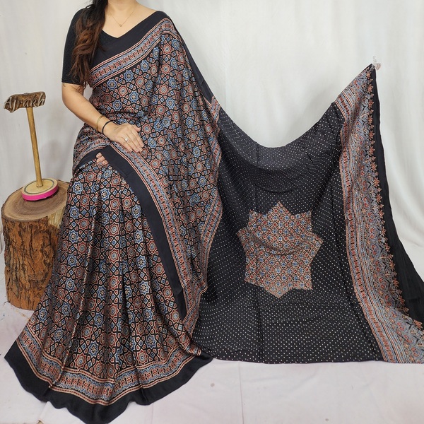 Home > Handlooms & Handcrafted > Womens Wear > Hand Block Printed Ajrakh Modal Saree