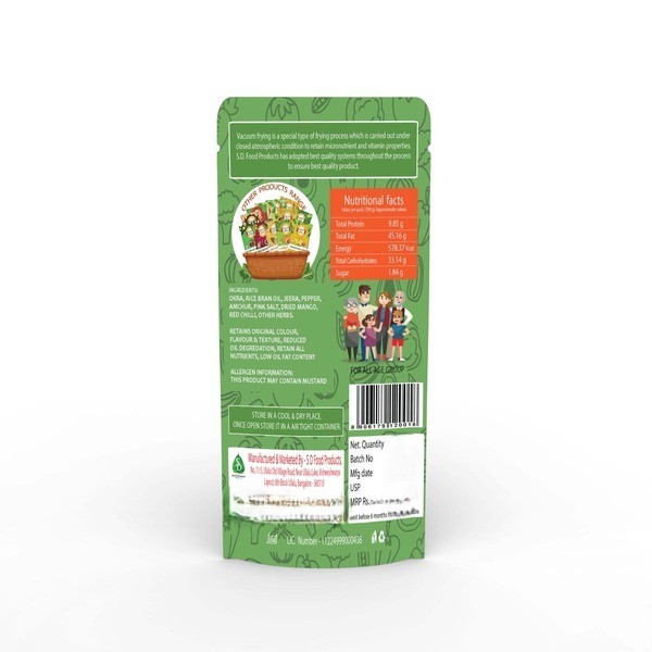 Description : Vacuum Fried Okra Chips Are A Crispy, Healthy Snack Made By Frying Thinly Sliced Okra At A Low Temperature In A Vacuum, Which Results In A Lighter, Lower-oil Product That Retains More Of The Vegetables Natural Nutrients, Colour, And Flavour. They Are An Alternative To Deep-fried Snacks, Offering A Crunchy Texture Without The High Fat Content, And Often Contain No Added Sugar, Artificial Colours, Or Preservatives. They Are A Good Source Of Dietary Fibre, Vitamins, And Antioxidants, As The Frying Method Helps Retain The Vegetables Natural Nutrients. Location : Karnataka, India