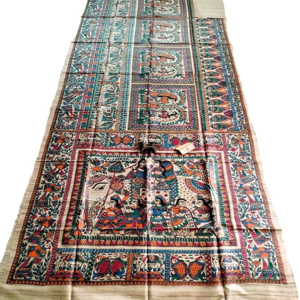 8250 Piece Description : A Hand-painted Pure Tussar Silk Saree Is An Exquisite Piece Of Wearable Art, Recognized For Its Inherent Natural Golden Sheen, Slightly Coarse Yet Supple Texture, And Rich Cultural Designs Applied By Hand. Sourced From The Wild Silk Of India, The Fabric Is Durable And Drapes Elegantly, Becoming Softer With Wear. The True Value Lies In The Intricate, Unique Hand-painted Motifs—ranging From Traditional Mythological Figures And Nature-inspired Themes To Complex Geometric Patterns—often Utilizing Regional Techniques Like Madhubani Or Kalamkari Artistry With Natural Dyes. This Meticulous Craftsmanship, Ensuring No Two Sarees Are Identical, Makes It A Lightweight, Breathable, And Unique Garment Suitable For Various Occasions, Typically Requiring Professional Dry Cleaning To Maintain Its Integrity. Location : Jharkhand, India