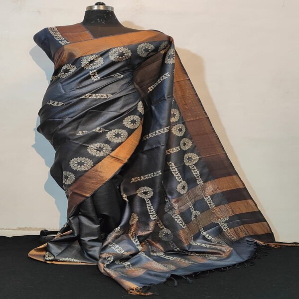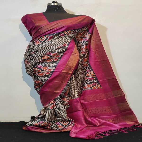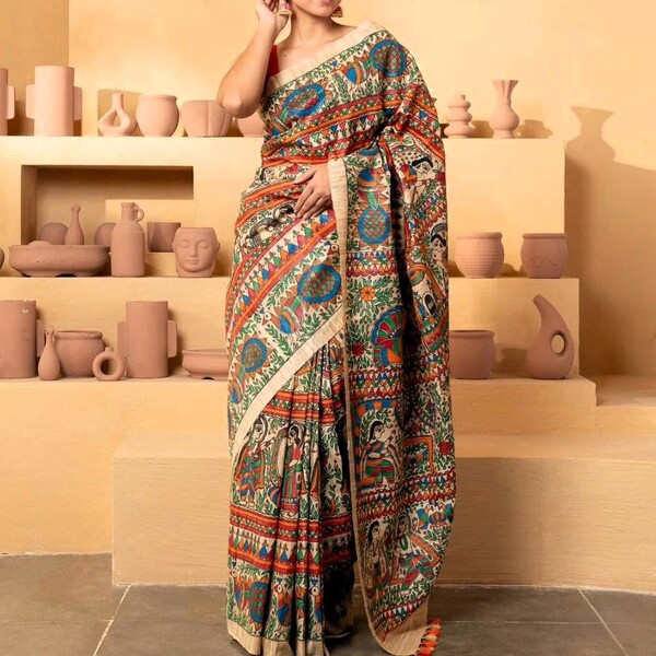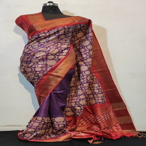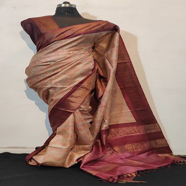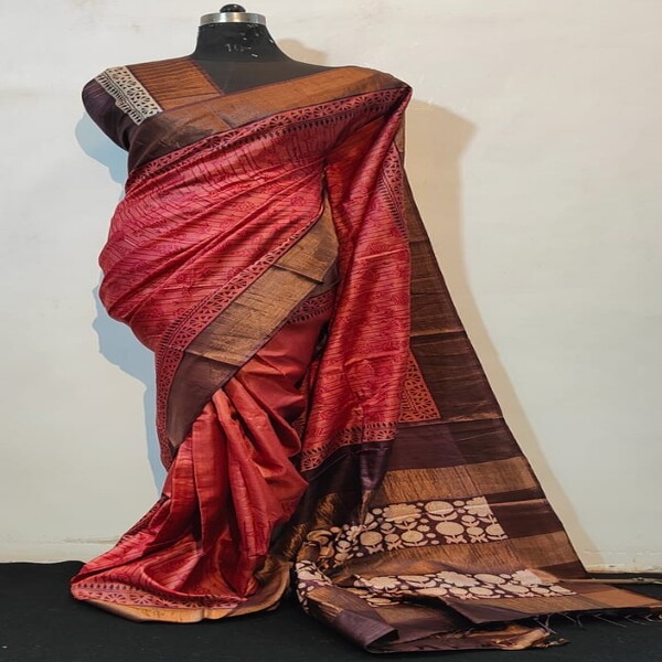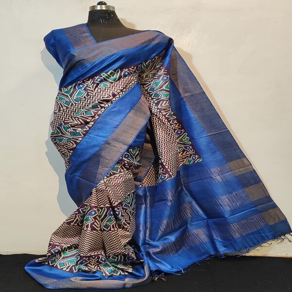 8250 Piece Description : A Hand-painted Pure Tussar Silk Saree Is An Exquisite Piece Of Wearable Art, Recognized For Its Inherent Natural Golden Sheen, Slightly Coarse Yet Supple Texture, And Rich Cultural Designs Applied By Hand. Sourced From The Wild Silk Of India, The Fabric Is Durable And Drapes Elegantly, Becoming Softer With Wear. The True Value Lies In The Intricate, Unique Hand-painted Motifs—ranging From Traditional Mythological Figures And Nature-inspired Themes To Complex Geometric Patterns—often Utilizing Regional Techniques Like Madhubani Or Kalamkari Artistry With Natural Dyes. This Meticulous Craftsmanship, Ensuring No Two Sarees Are Identical, Makes It A Lightweight, Breathable, And Unique Garment Suitable For Various Occasions, Typically Requiring Professional Dry Cleaning To Maintain Its Integrity. Location : Jharkhand, India