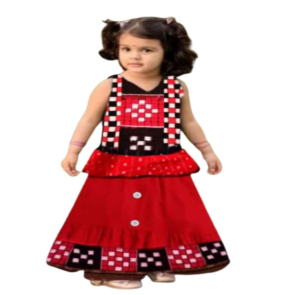 1540 Set Description : A Sambalpuri Lehenga Choli For Kids Is A Traditional Indian Outfit For Children That Features Vibrant Colours And Intricate Patterns From The Sambalpuri Ikat Weaving Style. This Ready-to-wear Set Includes A Skirt (lehenga), A Blouse (choli), And Often A Dupatta, All Crafted Using The Tie-dye Method To Create Unique, Culturally Rich Designs. The Lehenga Is Typically Flared, And The Choli Is A Fitted Blouse, Designed For Comfort And A Modern Look. Location : Odisha, India