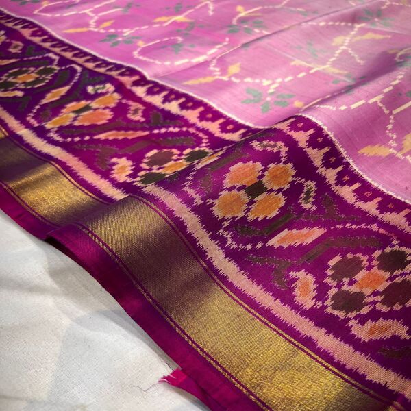 Patola silk sarees are luxurious, handwoven masterpieces from Patan, Gujarat, renowned for their vibrant colours, intricate geometric patterns, and complex double-ikat technique where both warp and weft threads are tie-dyed before weaving. These durable, reversible sarees feature rich, fade-resistant natural dyes and traditional motifs like elephants, parrots, and flowers. Patola sarees are often considered heirlooms due to their durability, high-quality, and timeless, reversible designs. Location : Gujarat, India