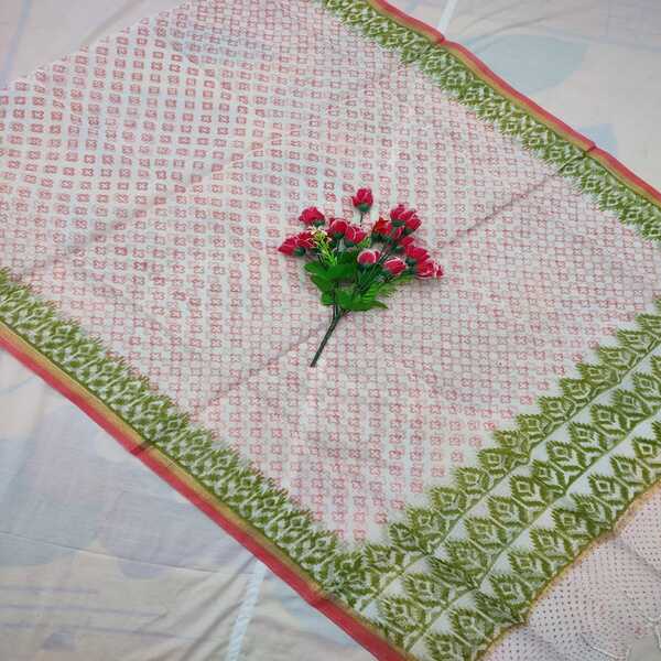 330 Piece Description : A Kota Doria Dupatta Is A Lightweight, Sheer, And Airy Scarf From Rajasthan, Known For Its Unique Square-checkered Weave Called Khat, Made From A Blend Of Cotton And Silk Threads That Give It A Delicate Feel, Lustrous Sheen, And Breathability, Often Adorned With Hand-block Prints Or Embroidery. It Drapes Beautifully, Making It Ideal For Both Everyday Wear And Festive Occasions In Warm Weather. Location : Rajasthan, India