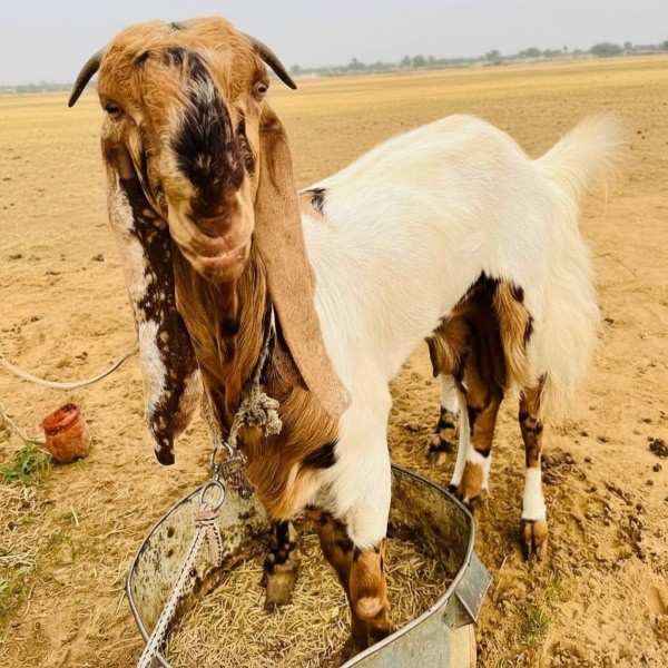 275 Kg Description : The Sirohi Female Goat Is A Hardy, Medium-sized Indian Breed Known For Its Brown Coat With Patches, Leaf-like Drooping Ears, And Small, Upward-curving Horns; She Has A Sturdy Build, Small Udder With Lateral Teats, Strong Maternal Instincts, And High Fertility, Making Her Excellent For Meat, Milk, And Breeding In Various Climates, Adapting Well To Both Grazing And Stall-feeding. Location : Rajasthan, India