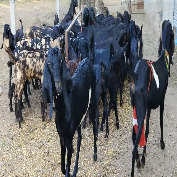 The Beetal goat is a large, dual-purpose breed from Indias Punjab region, known for high milk yield (up to 4L/day) and good meat, recognized by its large body, long drooping ears (like betel leaves), parrot-like nose, and colours like black, brown, or spotted. They adapt well to different climates, have long legs, short tails, and males sport beards, making them valuable for dairy, meat, and improving other local breeds. Location : Rajasthan, India