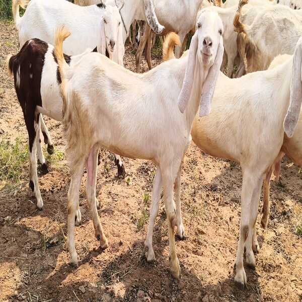 363 Kg Description : Sojat Female Goats (does) Are Distinct Indian Goats From Rajasthan, Known For Their White Coats (often With Patches), Long, Flat Drooping Ears, And Short Tails, Used Primarily For Meat But Also Milk. They Have A Well-developed Udder With Large, Conical Teats, Are Hardy In Harsh Climates, And Feature Fine Body Hair Called Feathers. Adult Females Weigh Around 40-50 Kg And Are Valued For Meat Quality, Though Milk Yield Is Moderate. Location : Rajasthan, India