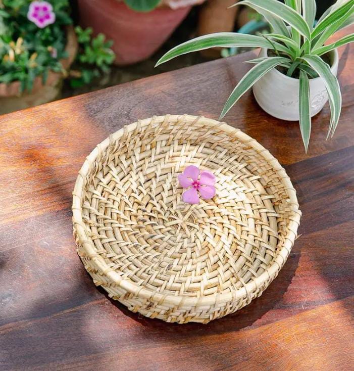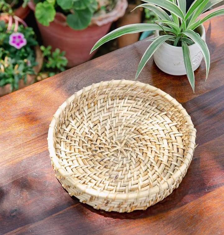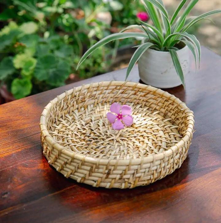 1104 Piece Description : Round Rattan Cane Tray. Channel Heritage And Handwoven Tribal Story With These Cane Trays. Use It As A Serving Tray For Tea And Snacks Or As A Decor Accent Piece At The Center Of Your Dining Table. Equally Useful At The Entrance To Collect Keys And Get All. Great For Outdoor Balconies Or Patio Furniture. Ideal For Farmhouse Or Garden Settings, Rustic And Bohemian Style Brings Out The Best In Picnic And Outdoor Events. Cane Tray Weaves A Natural And Organic Story To Any Decor Setting. Location : Uttar Pradesh, India