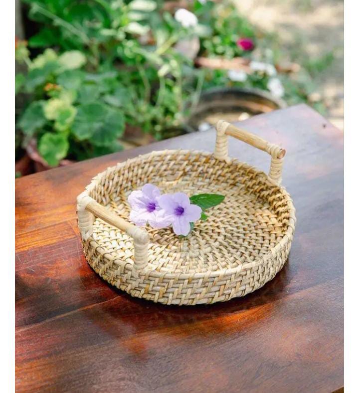 1495 Piece Description : Cane Rattan Tray . Channel Heritage And Handwoven Tribal Story With These Cane Trays. Use It As A Serving Tray For Tea And Snacks Or As A Decor Accent Piece At The Center Of Your Dining Table. Equally Useful At The Entrance To Collect Keys And Get All. Great For Outdoor Balconies Or Patio Furniture. Ideal For Farmhouse Or Garden Settings, Rustic And Bohemian Style Brings Out The Best In Picnic And Outdoor Events. Cane Tray Weaves A Natural And Organic Story To Any Decor Setting. Location : Uttar Pradesh, India