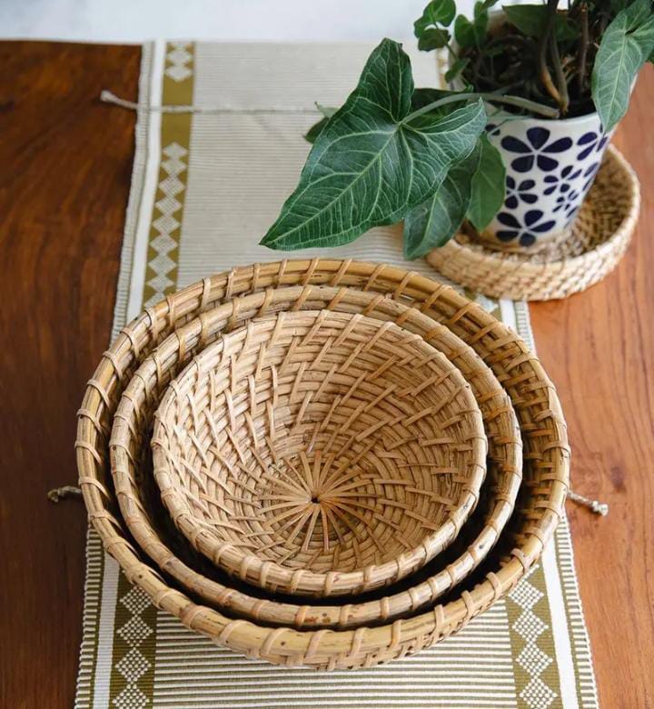 2600 Piece Description : Rattan Cane Basket. Channel Heritage And Handwoven Tribal Story With These Cane Baskets. Use It As A Fruit Basket For Your Favorite Fruits Or As A Decor Accent Piece At The Center Of Your Dining Table. Equally Useful At The Entrance To Collect Keys And Get All. Great For Outdoor Balconies Or Patio Furniture. Ideal For Farmhouse Or Garden Settings, Rustic And Bohemian Style Brings Out The Best In Picnic And Outdoor Events. Cane Basket Weaves A Natural And Organic Story To Any Decor Setting. Location : Uttar Pradesh, India