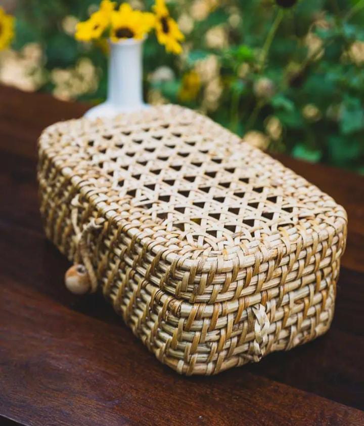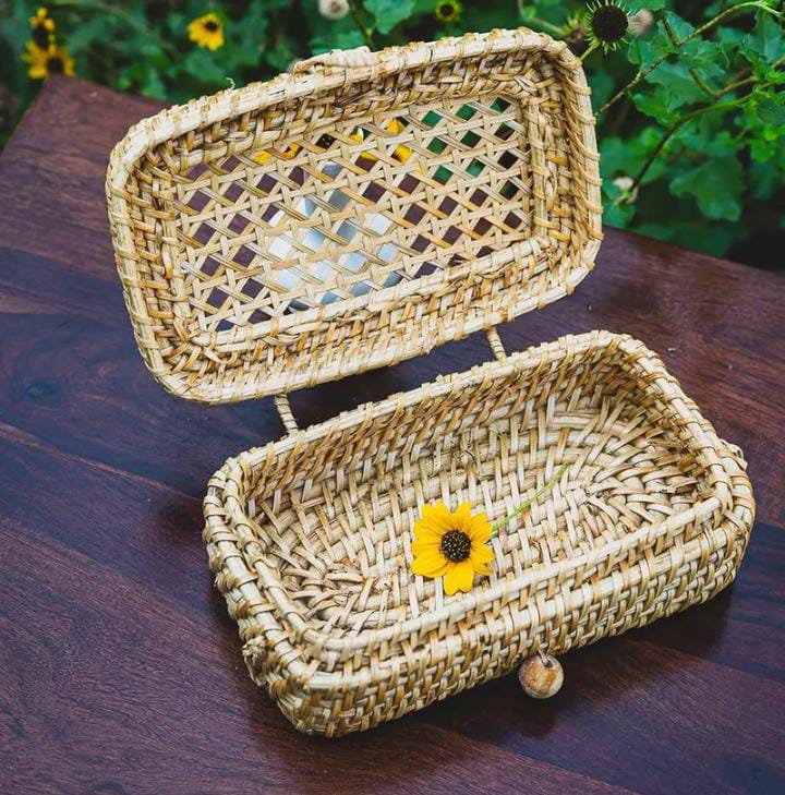 1884 Piece Description : Cane Woven Rectangular Box. Channel Heritage And Handcrafted Natural Decor Story With These Cane Box. Use It As A Decor Box, Jewellery Box Or As A Decor Accent Piece At The Center Of Your Dining Table. Equally Useful At The Entrance To Collect Keys And Get All. Bring Natural Charm To Your Office Table. Great For Outdoor Balconies Or Patio Furniture. Ideal For Farmhouse Or Garden Settings, Rustic And Bohemian Style Brings Out The Best In Picnic And Outdoor Events. Location : Uttar Pradesh, India