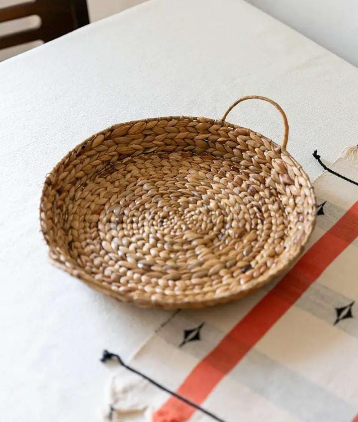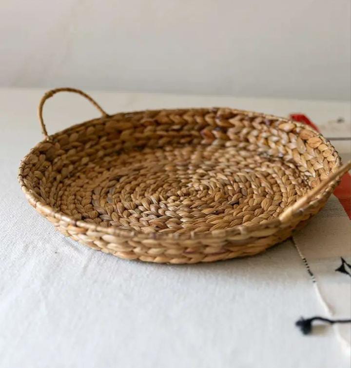 1539 No. Description : Water Grass Tray Basket. Channel Heritage And Handwoven Natural Decor Accent With These Grass Baskets. Use It As A Accent Piece Or As A Fruit Basket . Equally Useful At The Entrance To Collect Keys And Get All. Great For Outdoor Balconies Or Patio Furniture. Ideal For Farmhouse Or Garden Settings, Rustic And Bohemian Style Brings Out The Best In Picnic And Outdoor Events. Ideal As A Declutter For Table Or As An Accent Piece. Dazzle Your Decor With These Natural And Earthy Baskets. Location : Uttar Pradesh, India