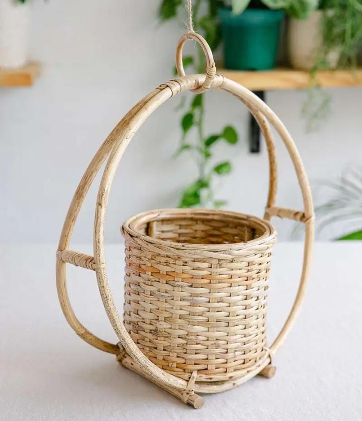 1884 Piece Description : Cane Hanging Planter Woven. Channel Heritage And Handwoven Style With These Cane Hanging Planters. Great For Indoors, Outdoors And Balcony. Hang Them Long Or Short Depending On Your Space. Compliments Balcony And Patio Furniture. Ideal For Farmhouse Or Garden Settings, Rustic And Bohemian Style Brings Out The Best In Outdoor Events. Create A Decor Theme For Your Parties And Other Outdoor Events With These Handmade Planters From Tukura Home. Location : Uttar Pradesh, India