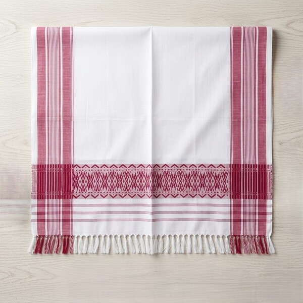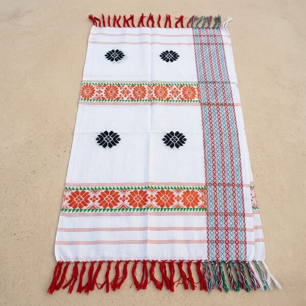 The Gamosa is a multipurpose cloth that can be used as a towel, handkerchief, head covering, waistband, or even as a gift wrapper. It is an important part of Assamese culture and is used in various social, cultural, and religious ceremonies. The Gamosa is also a symbol of hospitality, friendship, and respect. Location : Assam, India