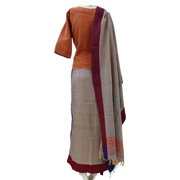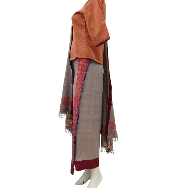 23400 Piece Description : The Gale Wraparound Puanchei Dress Epitomises Arunachal Pradeshs Artisanal Excellence. Woven By Skilled Craftsmen Using Cotton Warp, Weft, And Extra Weft, It Showcases Intricate Patterns And Vibrant Hues That Reflect The Regions Rich Cultural Heritage. Location : Arunachal Pradesh, India