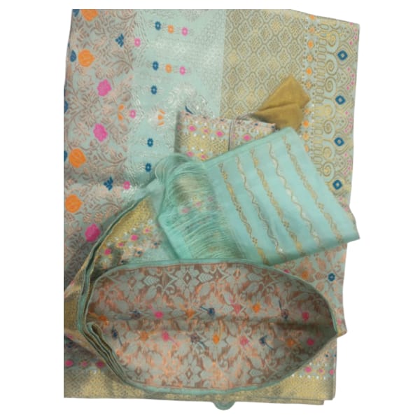 44200 Set Description : The Mekhela Sador Is A Two-piece Traditional Outfit From Assam, India. It Consists Of A Mekhela, Which Is A Rectangular Piece Of Fabric Worn As A Skirt, And A Sador, Which Is A Long Piece Of Cloth Draped Over The Upper Body Like A Shawl Or Dupatta. Location : Assam, India
