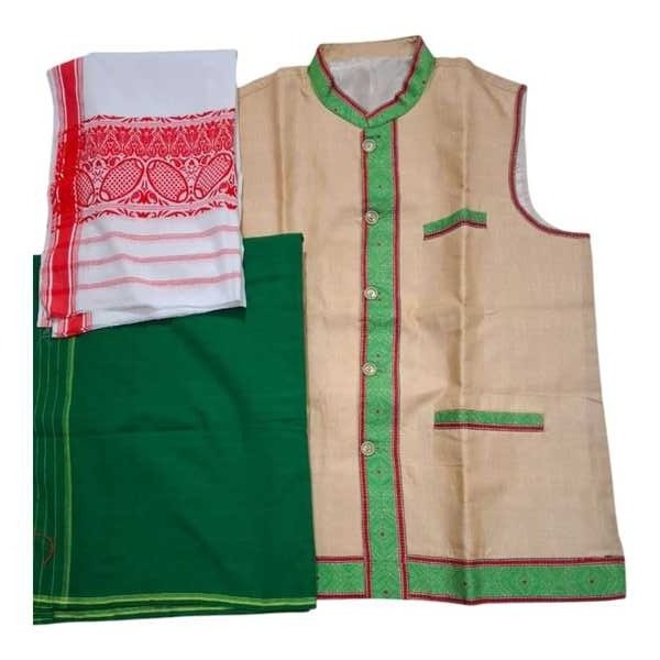 Home > Handlooms & Handcrafted > Mens Wear > Set Of Traditional Dhoti Towel And Waist Coat