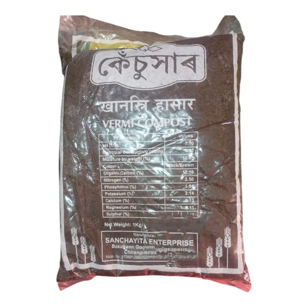 21 Kg Net Weight : 1 Kg Description : Vermicompost, Also Known As Worm Compost Or Vermicast, Is A Nutrient-rich Soil Amendment Created By Using Earthworms To Decompose Organic Matter, Like Food Scraps And Yard Waste, Into A Valuable Fertilizer. Location : Assam, India