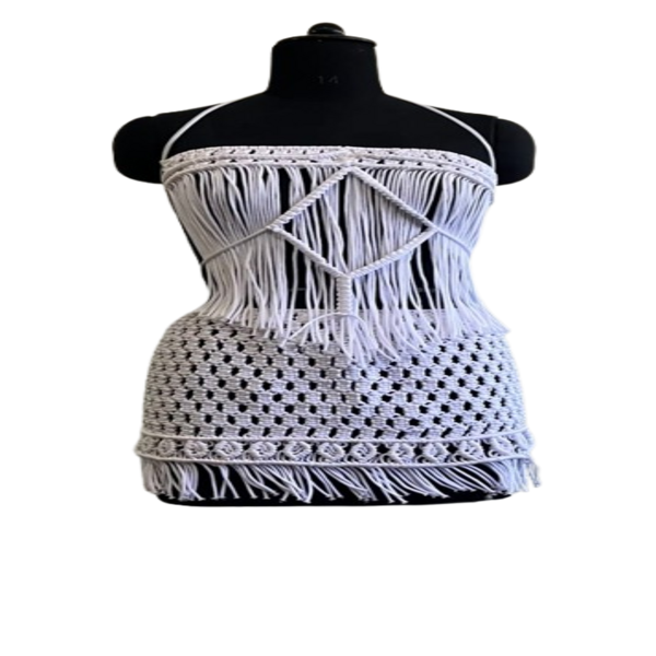 3769 Piece Description : A Macrame Cord Dress Is A Garment Crafted Using Macrame, A Fiber Art Technique That Involves Knotting Threads Or Cords To Create Patterns And Textures. These Dresses Are Often Designed To Be Versatile And Can Be Worn For Various Occasions, Including Beachwear, Festivals, And Special Events. Location : Jammu & Kashmir, India