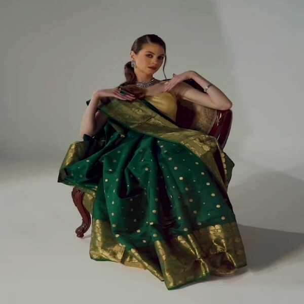 Home > Handlooms & Handcrafted > Womens Wear > Chanderi Katan Silk Saree With 1 Naal Buti