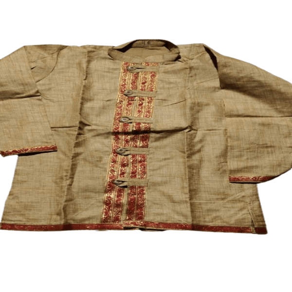 880 Piece Description : The Pha Su Is A Traditional Ahom Garment, Essentially A Shirt Or Blouse, Often Made From Silk. It Is A Key Component Of The Ahom Traditional Attire, Worn By Both Men And Women. Specifically, It Is One Of The Four Main Pieces Of Ahom Attire, The Others Being The Faa Ru (crown), Faa Mai (cloth Wrapped Around The Body), And Faa Sin (long Skirt). The Pha Su, Often Golden In Color, Is A Significant Part Of The Ahoms Distinct Dress Style. Location : Assam, India