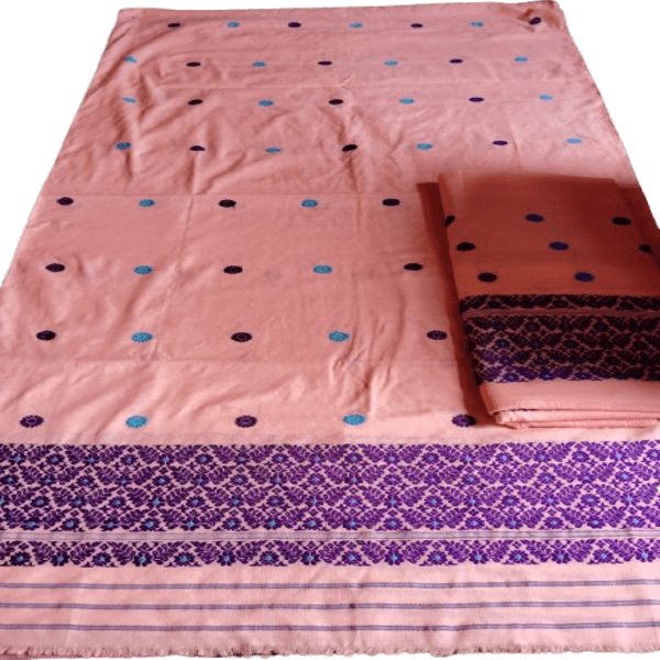 2860 Set Description : A Cotton Mekhela Sador Is A Traditional Two-piece Assamese Garment Worn By Women, Typically Made Of Cotton Fabric. It Consists Of Two Main Components: The Mekhela, A Skirt-like Garment Wrapped Around The Waist, And The Sador, A Long Piece Of Cloth Draped Over The Upper Body. Location : Assam, India